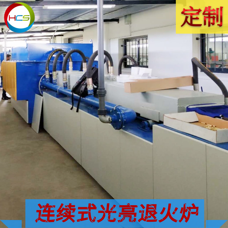 該裝置主要由傳動系統(tǒng)、加熱系統(tǒng)、冷卻系統(tǒng)、控制系統(tǒng)、氨分解供氣系統(tǒng)組成。馬弗爐采用進口耐高溫鎳合金壓焊而成;可拆裝的電熱元件可上下加熱;鋼帶輸送無級調(diào)速;液氨分解得到的氣體混合物(氫75%、氧25%)進入爐缸,達到氣體保護效果;氣體方向調(diào)節(jié)裝置,保證大氣穩(wěn)定。經(jīng)過這種爐處理后,產(chǎn)品表面會變得光亮,不會被氧化。所有經(jīng)過處理的產(chǎn)品將達到良好的一致性。