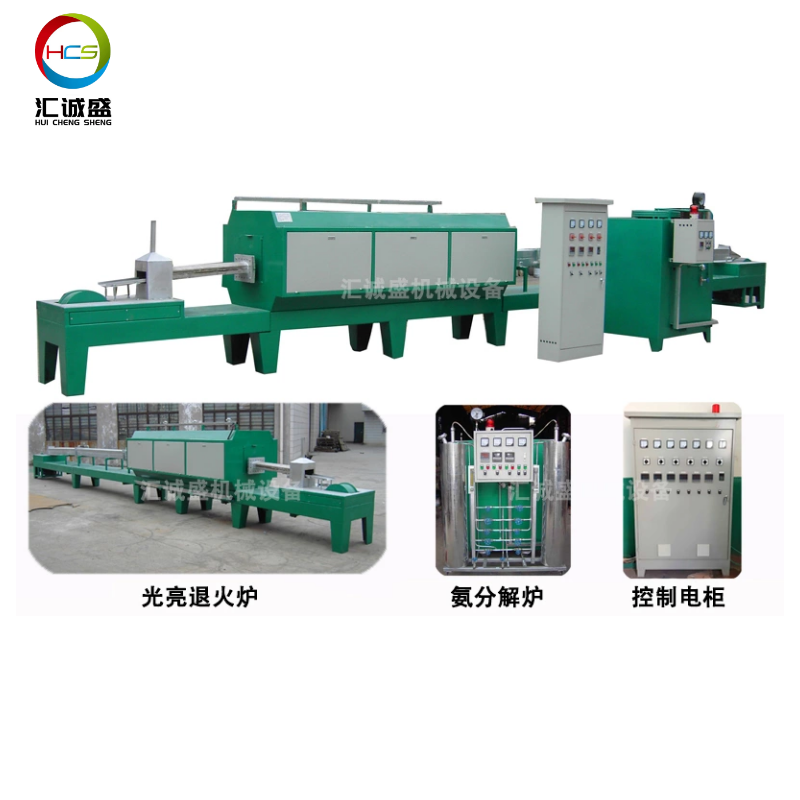 該裝置主要由傳動(dòng)系統(tǒng)、加熱系統(tǒng)、冷卻系統(tǒng)、控制系統(tǒng)、氨分解供氣系統(tǒng)組成。馬弗爐采用進(jìn)口耐高溫鎳合金壓焊而成;可拆裝的電熱元件可上下加熱;鋼帶輸送無(wú)級(jí)調(diào)速;液氨分解得到的氣體混合物(氫75%、氧25%)進(jìn)入爐缸,達(dá)到氣體保護(hù)效果;氣體方向調(diào)節(jié)裝置,保證大氣穩(wěn)定。經(jīng)過(guò)這種爐處理后,產(chǎn)品表面會(huì)變得光亮,不會(huì)被氧化。所有經(jīng)過(guò)處理的產(chǎn)品將達(dá)到良好的一致性。